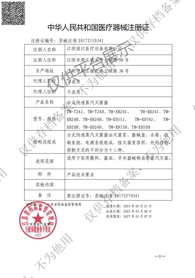 產(chǎn)品名稱 : 濱江臺(tái)式快速壓力蒸汽滅菌器TM-XB24J