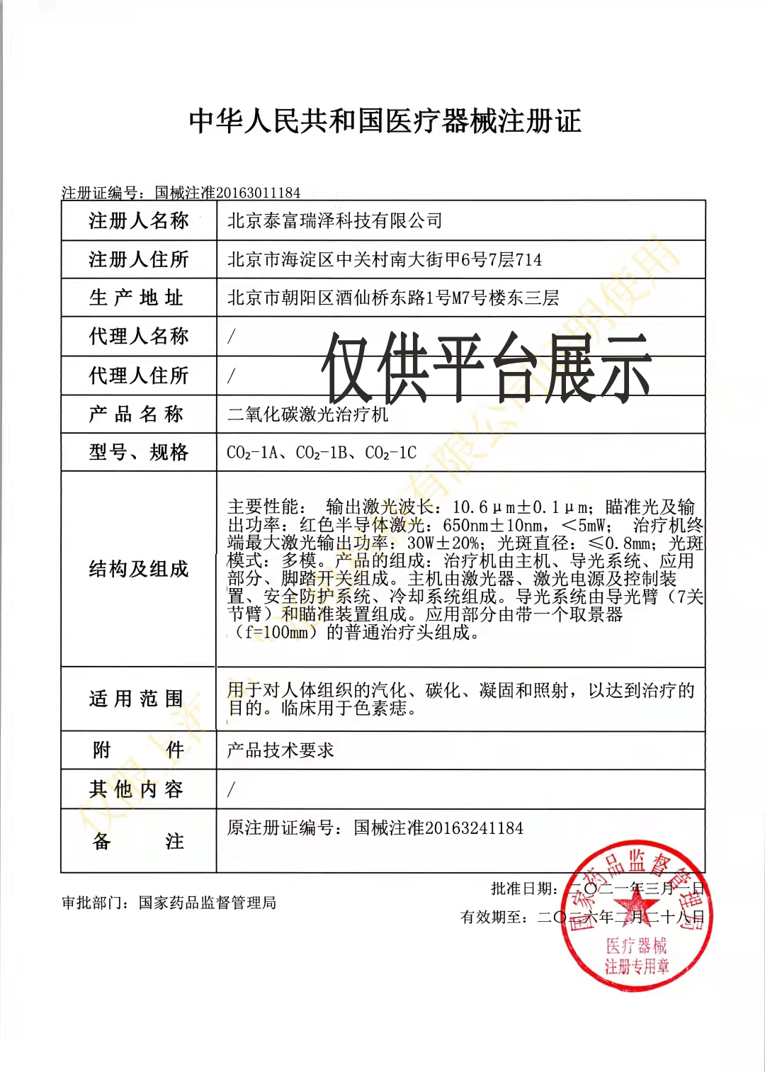 產(chǎn)品名稱(chēng) : 泰富科技 二氧化碳激光治療儀CO2-1A、CO2-1B、CO2-1C